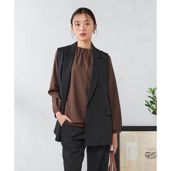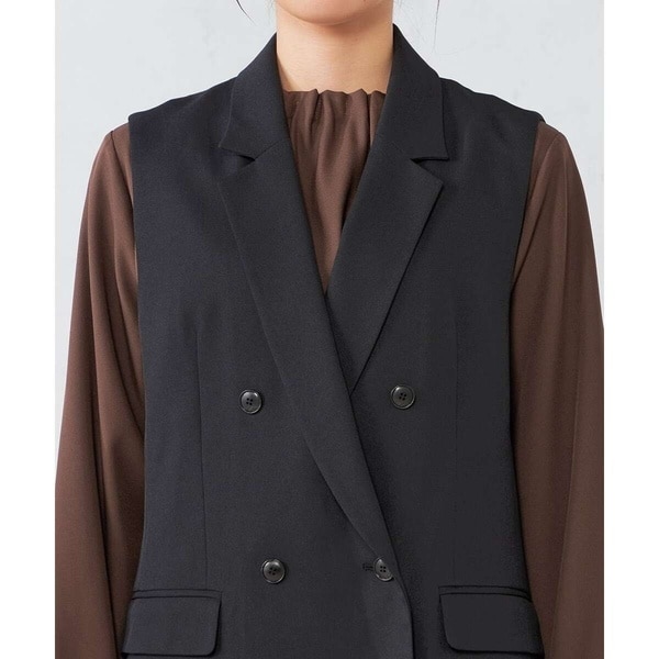 【洗える/イージーケア/吸水速乾/ストレッチ】梳毛調ダブルジレ