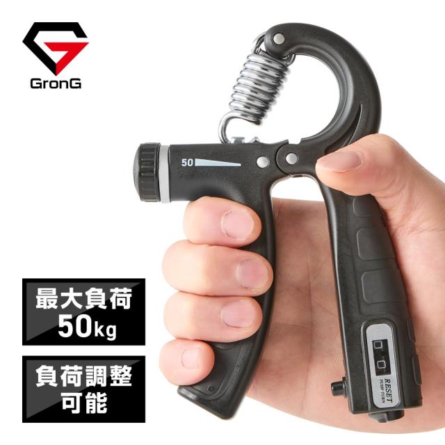 グロング ハンドグリップ 可変式 最大負荷50kg 品質試験実施済み カウンター付き 握力 トレーニング 握力グリップ ハンドグリッパー