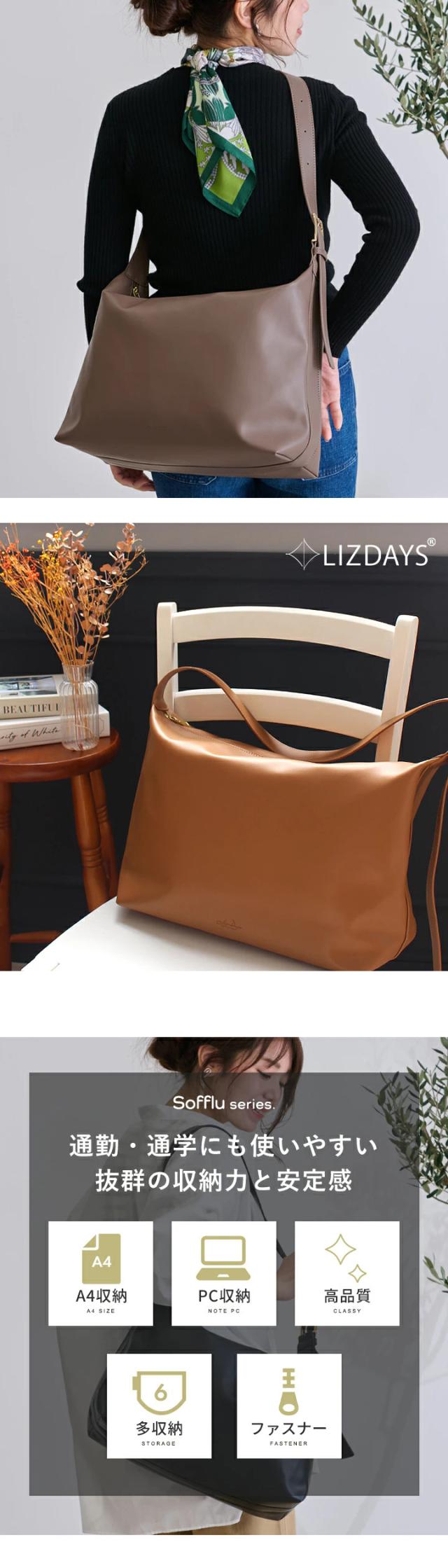 ショルダーバッグ 大容量 レディース 斜めがけ かばん フェイクレザー 合皮 ショルダー 大きめ A4 マチ広 おしゃれ LIZDAYS リズデイズ 大人 ワンショルダー 肩かけ ファスナー付き 多収納 通勤 通学 オフィス お出かけ 上品 kac【lz-70411】