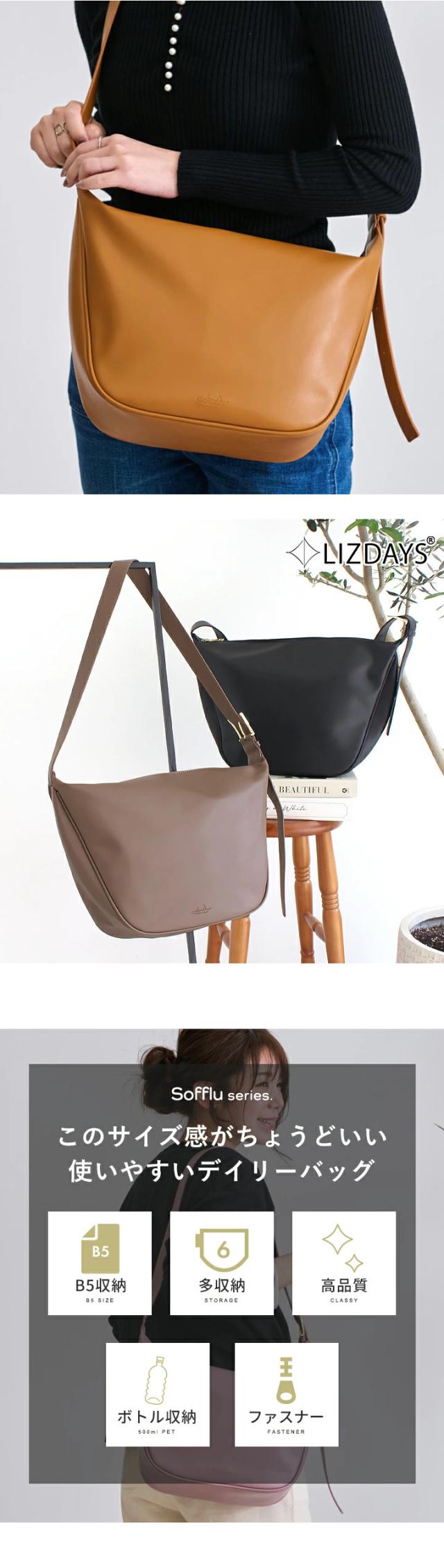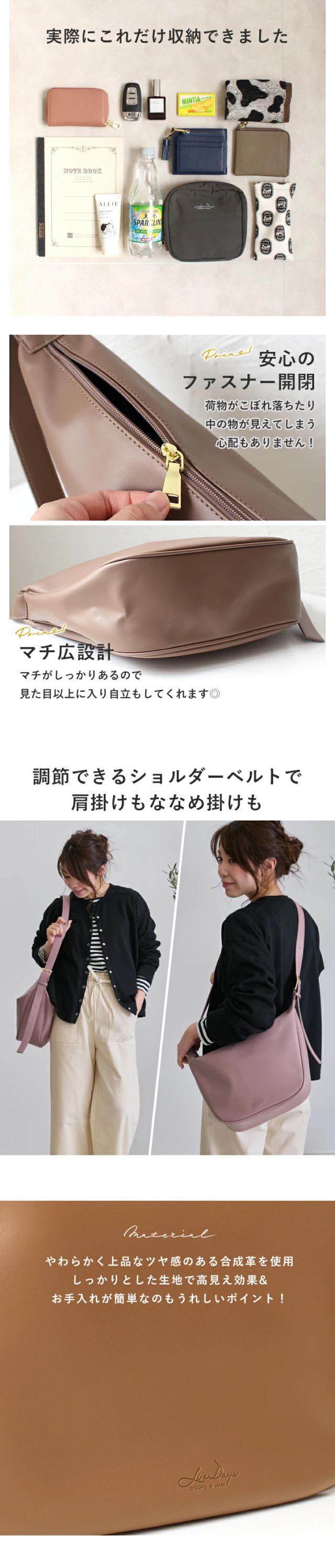 ショルダーバッグ フェイクレザー レディース 斜めがけ かばん 舟形 ショルダー 合皮 B5 おしゃれ LIZDAYS リズデイズ 大人 ワンショルダー 肩かけ ファスナー付き 多収納 通勤 通学 オフィス お出かけ 上品 kac【lz-70412】