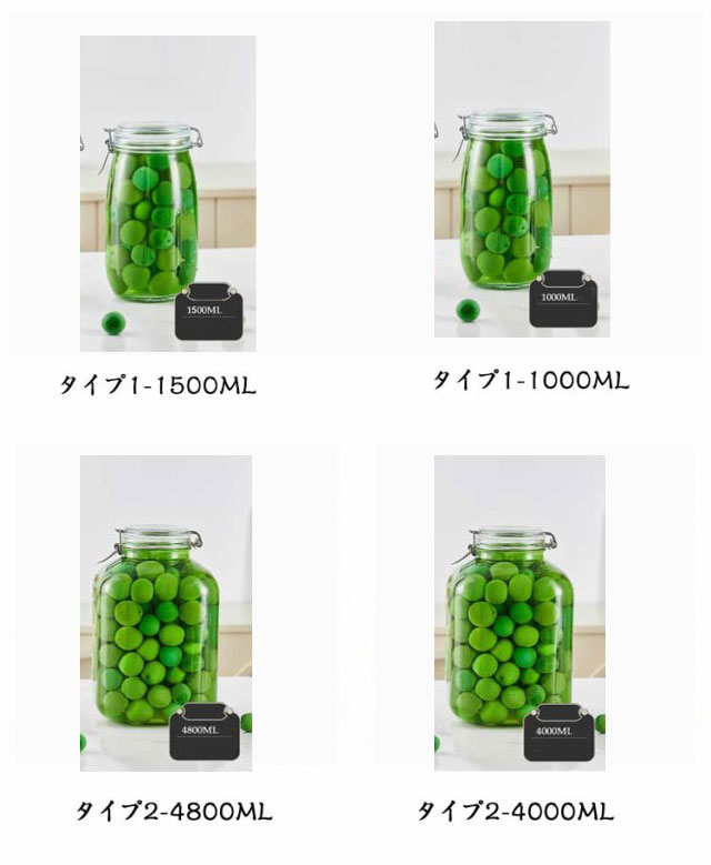 | 中身が見えるガラス製密封びんです。 梅酒など果実酒や自家製の梅干しが作れる保存瓶! 広口なので、果実や液体の出し入れがとってもラクです。 また、隅々まで洗いやすく、お手入れも簡単です。 ガラス素材なので容器の匂い残りが気になりません。 また、透明ガラスで果実酒など熟成状態がよく分かります。 密封びんは脱気(真空状態)できるので、中身の長期保存が可能です。 | |