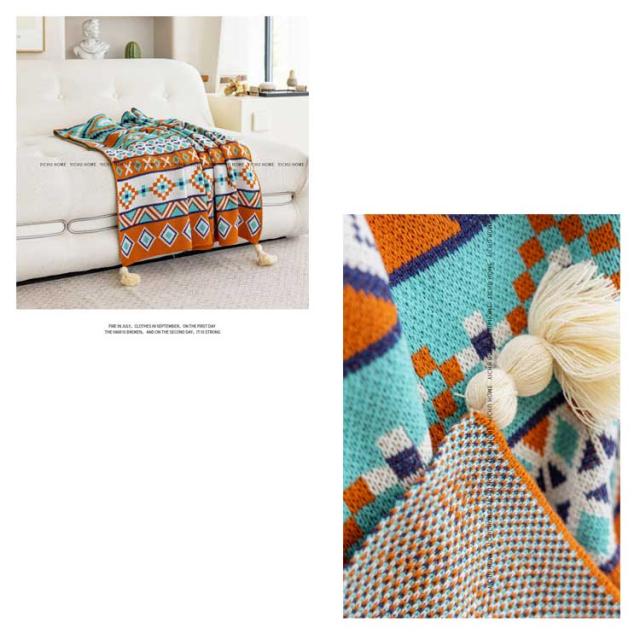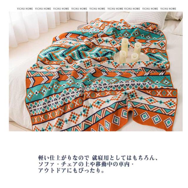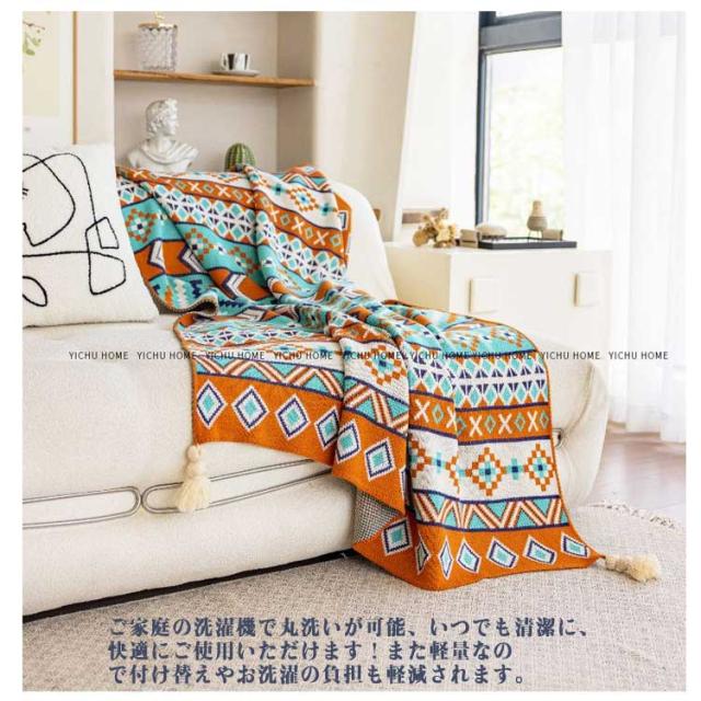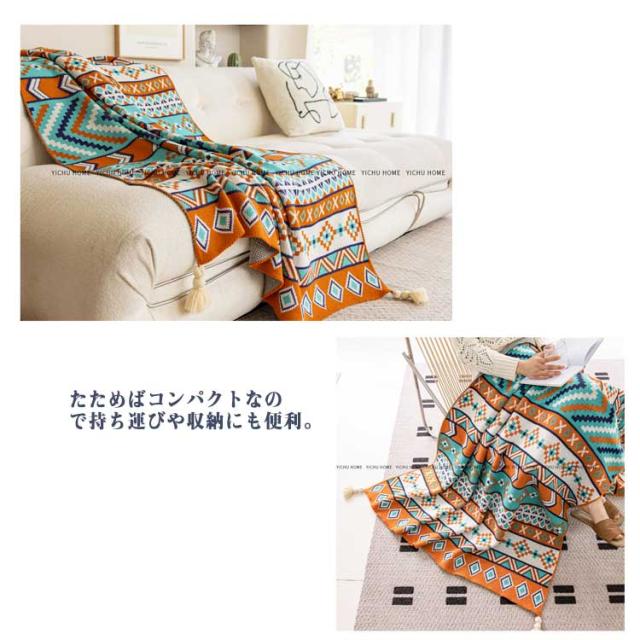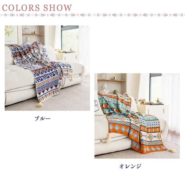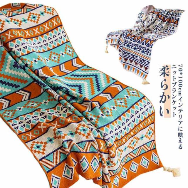 フリンジ付きニットブランケット 毛布 シングル ブランケット 総柄 柔らかい 70*100cm ひざ掛け お昼寝 大判 おしゃれ 北欧 エスニック風 春夏 秋冬 マルチカバー マルチクロス タオルケット 膝掛け 冷房対策 ギフト プレゼント オールシーズン 送料無料