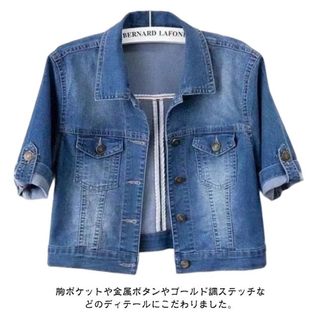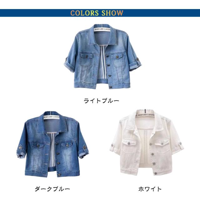半袖デニムジャケット 送料無料 薄手 五分袖 半袖 デニムジャケット ライトブルー 夏 送料無料 デニム トップス 半袖ジャケット デニム ブラウス 羽織り 大きいサイズ デニムポレロ トップス Gジャン デニムジャケット ダークブルー ホワイト