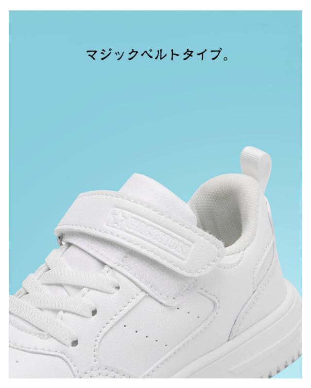 | 16.5cm〜24.5cm 普段使いはもちろん、通学などの学校用にもおすすめのスニーカーです。マジックベルトタイプ。 突然の小雨でも安心の防水設計。 屈曲性の良いソール。足裏は路面が濡れていても滑りにくい防滑ソール。 通学や運動、外遊びなど、マルチに使えるスタイリッシュなデザインの一足です。 | |