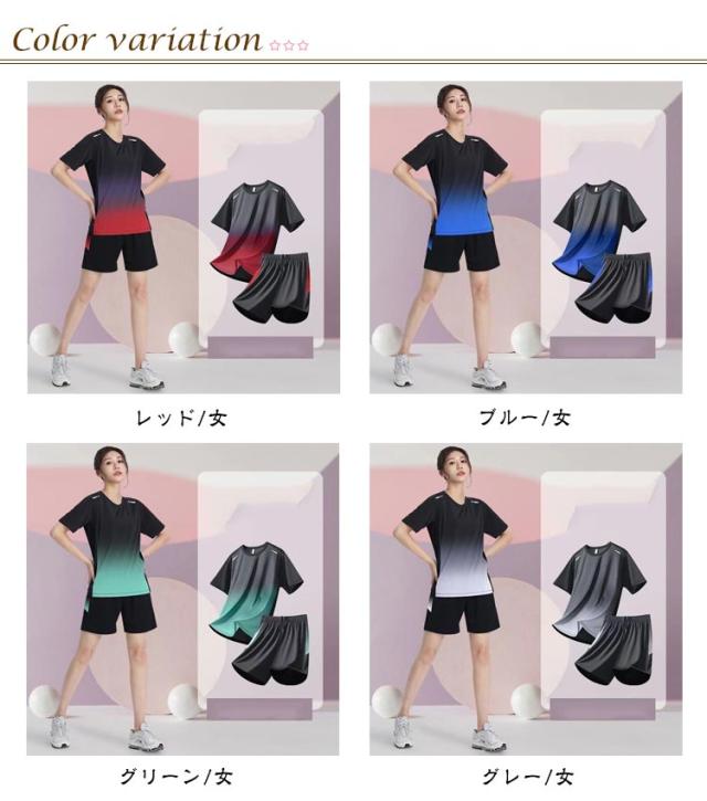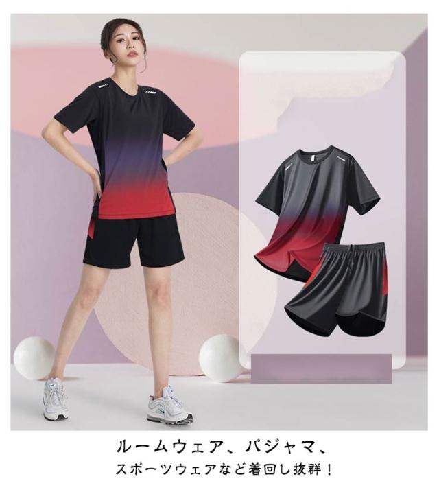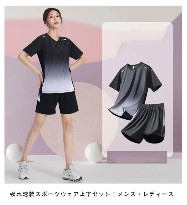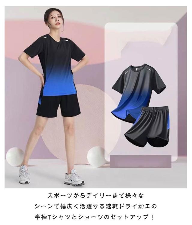 | 吸水速乾スポーツウェア上下セット!メンズ・レディース 吸水速乾性と通気性に優れたドライ生地でたくさん汗をかいても直ぐに乾いてべとつかず、優れた抗菌効果で嫌な臭いもしっかり防ぐ。 スポーツからデイリーまで様々なシーンで幅広く活躍する速乾ドライ加工の半袖Tシャツとショーツのセットアップ! ルームウェア、パジャマ、スポーツウェアなど着回し抜群! 柔らかくてストレッチの効いたサラッとした着心地はルームウェアやワンマイルウェアとして活躍します。 | |