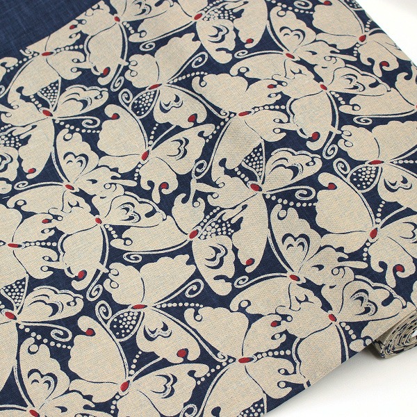 【10cm単位価格】 蝶々ちょうちょ むら糸 手捺染 藍染調 和調 ほっこり和柄 定番 モーリー 生地 布 綿100% 約110cm幅(柄の有効幅:約90〜100cm) KP7090-21 ゆうパケット1.5m対応 ( ハンドメイド 手作り 手芸 巾着 雑貨小物 日本製 )