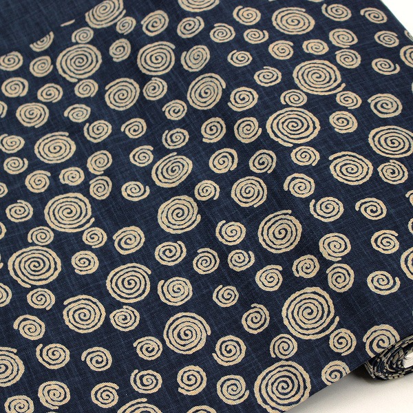 【10cm単位価格】 渦巻き むら糸 手捺染 藍染調 和調 ほっこり和柄 定番 モーリー 生地 布 綿100% 約110cm幅(柄の有効幅:約90〜100cm) KP7090-43 ゆうパケット2m対応 ( ハンドメイド 手作り 手芸 巾着 雑貨小物 日本製 )