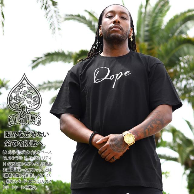 ACE FLAG Tシャツ 半袖 メンズ 春夏用 黒 大きいサイズ エースフラッグ おしゃれ かっこいい シンプル スラング Dope ドープ 最高 メッセージTシャツ ビッグシルエット b系 ヒップホップ ファッション ダンス ストリート系 ブランド 服 2025 新作 AF-TS-TS-081