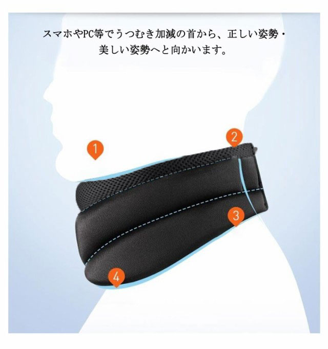 | パソコンやスマホなどの首の痛みに。頭部を支えてくれる首のサポーター 頭の重みによる体への負担がスゴク少なくなる位置で頭をしっかり支えることができます。 首をまっすぐにして首を立てることで、首・肩・背中・腰への負担を軽減できます 厚み3mのクッションでしっかりサポート。 約55gと軽量でコンパクトなので、持ち運びにも便利な頸椎サポーターです。 スマホやPC等でうつむき加減の首から、正しい姿勢・美しい姿勢へと向かいます。 首をまっすぐにする習慣付けができ、外した時にも首を意識しやすくなります。 見た目もスタイリッシュなので、自宅でも仕事場でのデスクワーク時でもお使い頂けます | |