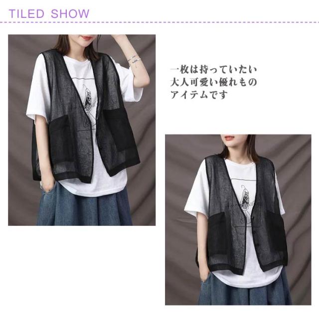 メッシュ ポケット 薄手 ベスト 夏 レディース チョッキ レイヤード はおりもの 大きいサイズ お洒落 ジレ メッシュ 前開き メッシュ 重ね着 ミニ丈 きれいめ 透かし編み ミセス シニア 母の日 プレゼント 女性用
