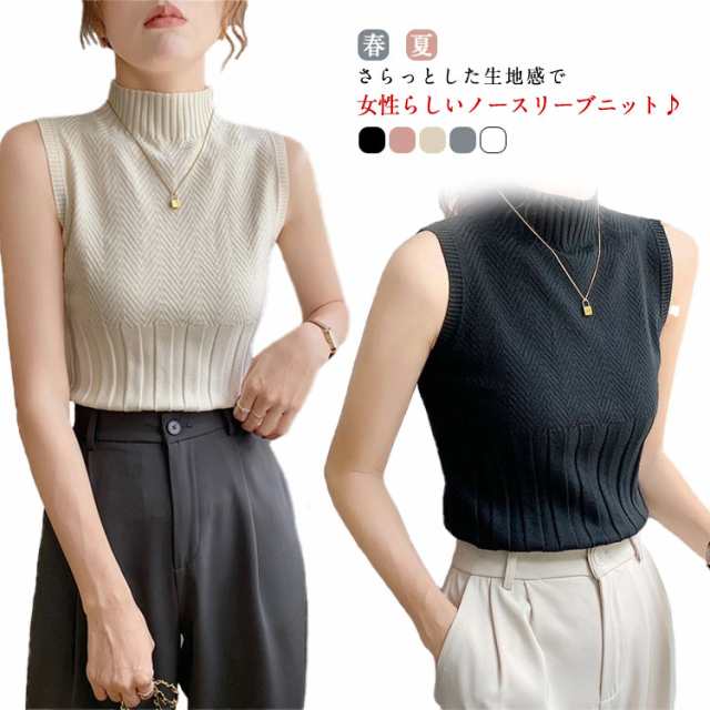 ノースリーブ かわいい レディース トップス カットソー ニット タンクトップ リブ リブニット タンクトップ サマーニット インナー レイヤード ハイネック 薄手 春夏 重ね着 サマー タイト きれいめ カジュアル おしゃれ セクシー ニットトップス