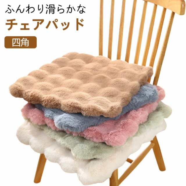 ふわふわ 滑り止め おしゃれ チェアマット 四角 座布団 チェアパッド チェアパッド 45×45cm 50×50cm 低反発 もこもこ 30×30cm スクエア 短毛 ポコポコ 北欧 ナチュラル モダン シンプル 姫系 かわいい ひも付 フェイクファー 玄関 カーシート 車