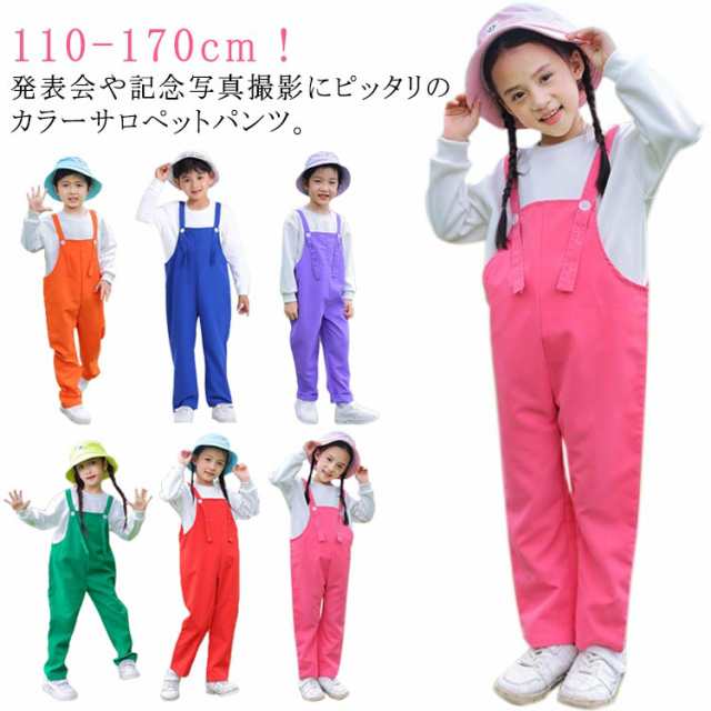 オーバーオール 発表会 キッズ キッズ 子供 ベビー 女の子 男の子 保育園 サロペット カラーパンツ 幼稚園 カラフル ダンス衣装 卒園式 演出服 学園祭 文化祭 応援団 学校活動 ダンスウエア 卒業式 写真撮影 記念写真 韓国子供服 無地 110-170cm