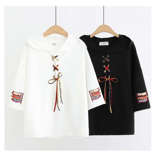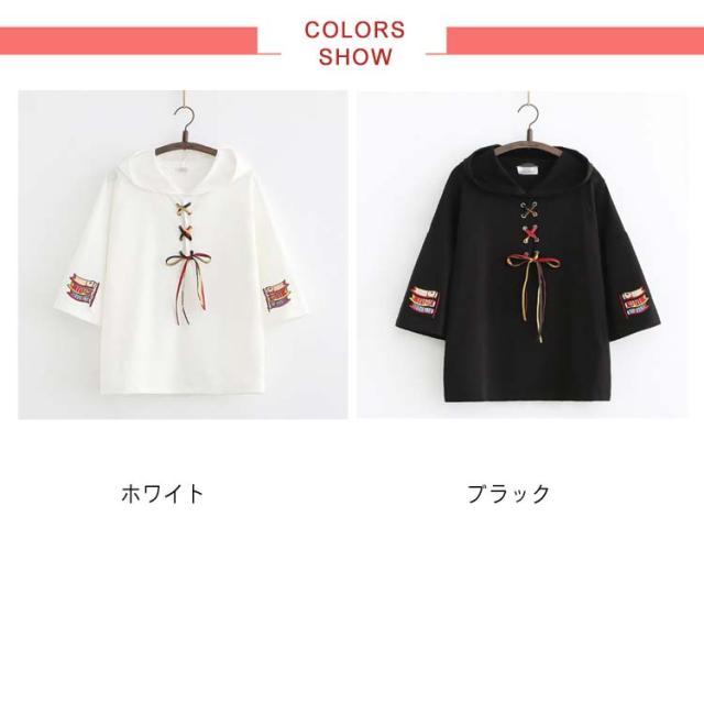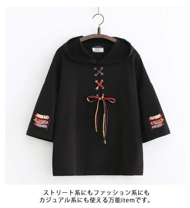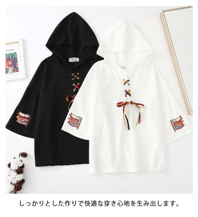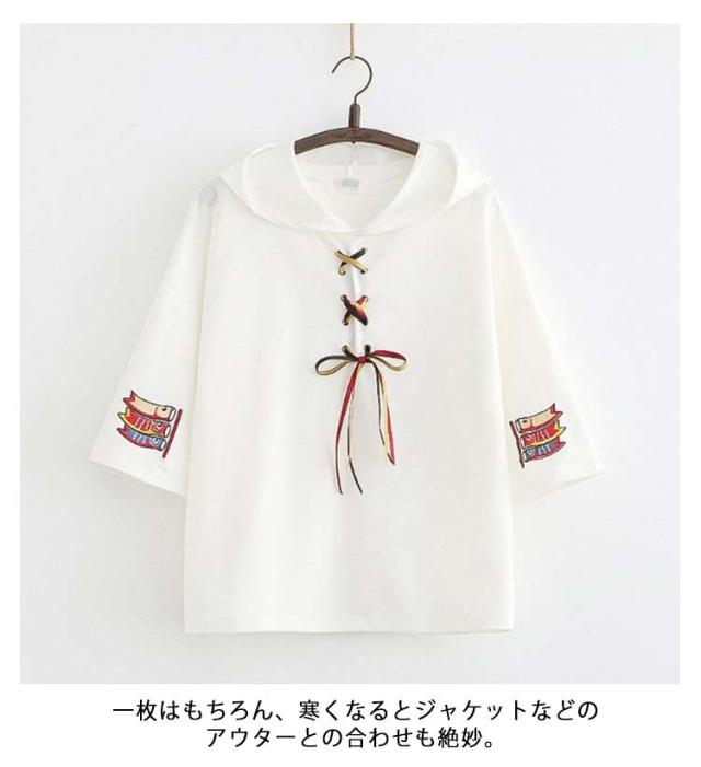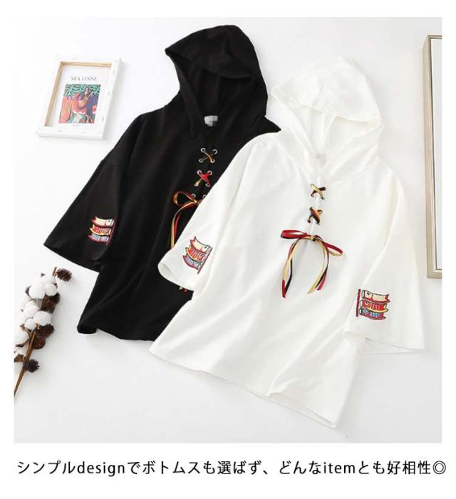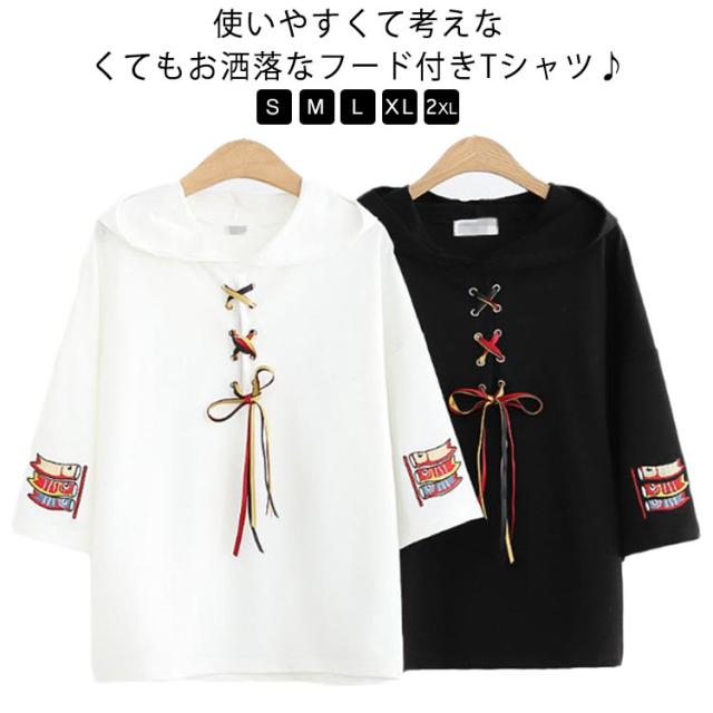夏 パーカー レディース フード付き カットソー 半袖パーカー 五分袖 トップス おしゃれ 送料無料 ゆったり カジュアル 大きいサイズ シンプル Tシャツ