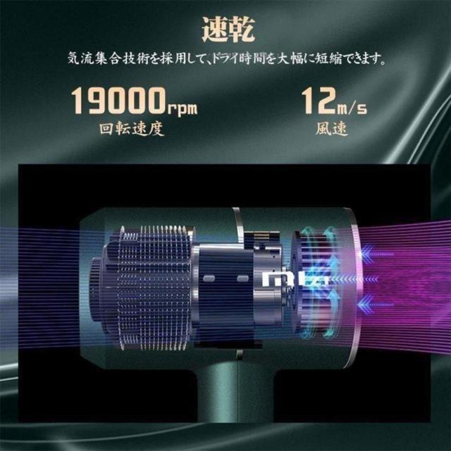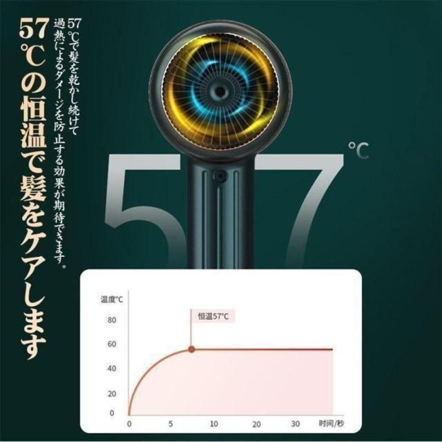 気流集合技術を採用して、大風量で短時間にドライできます。加熱により髪の損傷を防止するため、57°Cで髪を乾かし続けて断髪、ダメージを防止できます。