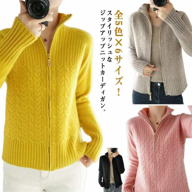 ジップアップ ニット レディース ニットカーディガン ハイネック 立ち襟 ジップアップ カーディガン セーター ジャケット ケーブル編み 長袖 おしゃれ 30代
