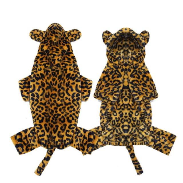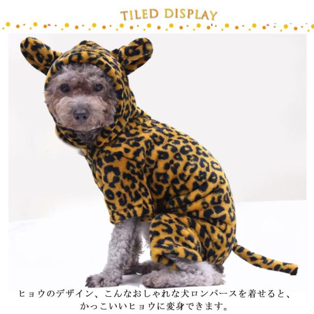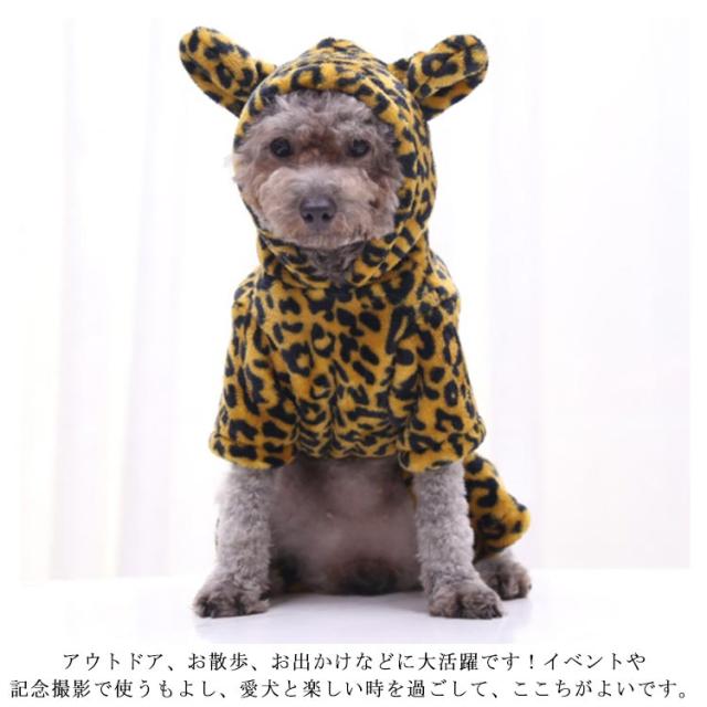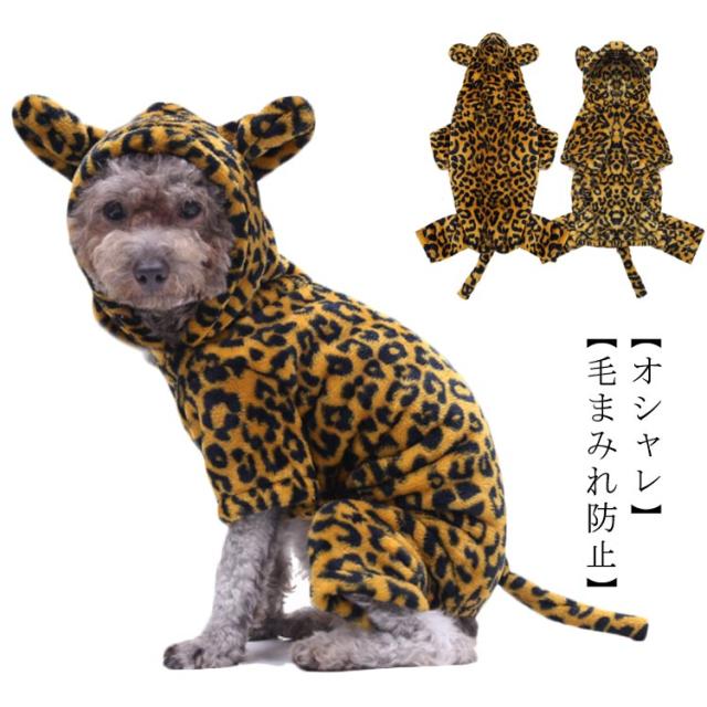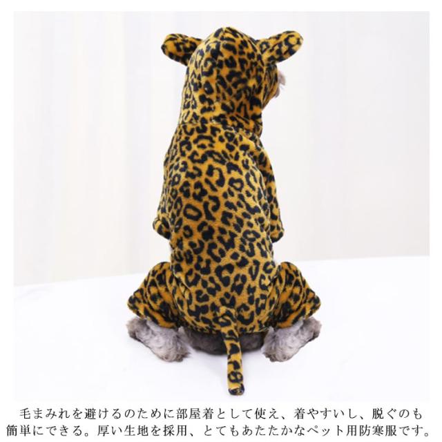 ペット服 豹 トラ ヒョウ柄 ドッグウェア もこもこ つなぎ パーカー 小型犬 中型犬 着ぐるみ フード付き 犬服 カバーオール 虎 フリース いぬ ねこ 年賀状 秋冬 おしゃれ ロンパース