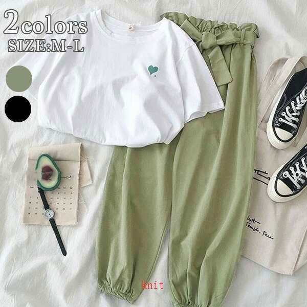 セットアップ 可愛い 上下セット カジュアル Tシャツ サルエルパンツ おしゃれ ルームウェア トップス レディース()