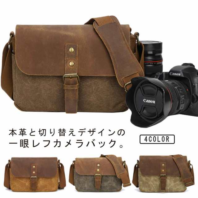 ショルダーパッド付き 一眼レフ 帆布 カメラバッグ 本革 ショルダーバッグ 防水 カメラ 一眼レフカメラバッグ レンズ収納 撥水加工 コンパクト 間仕切り ベルト調節可能 メッセンジャーバッグ 防水キャンバス