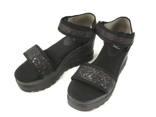 【中古】フィン Fin 厚底グリッターサンダル S ブラック 黒 ラメ 靴 レディース