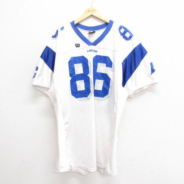 【商品名】 XL★古着 ウィルソン 半袖 ビンテージ フットボール Tシャツ メンズ 90年代 90s 86 大きいサイズ ロング丈 メッシュ地 Vネック USA製 白 ユニフォーム ゲームシャツ