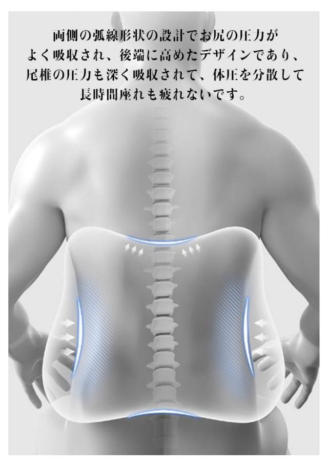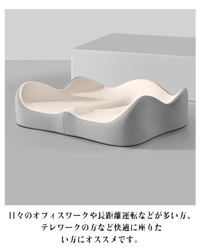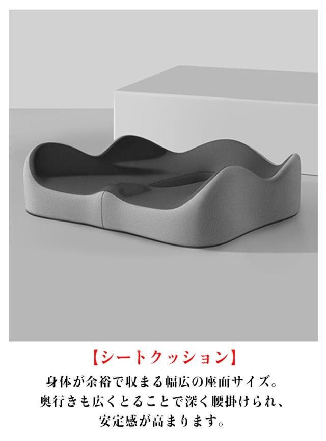 | 【シートクッション+背当てクッション 】 人間工学に基づいた設計されたクッション。 座るだけで美しい姿勢がつくれる3Dクッション。 柔らかすぎず硬すぎない適度な反発力で体圧を分散することで長時間座っていても快適です。 日々のオフィスワークや長距離運転などが多い方、テレワークの方など快適に座りたい方にオススメです。 【シートクッション】 身体が余裕で収まる幅広の座面サイズ。奥行きも広くとることで深く腰掛けられ、安定感が高まります。 前側に自然な傾斜をつけることで太ももへの体圧を軽減。背筋も自然と伸び、疲れにくい体勢を維持します。 W字型の座面と腰まで支える高めの後端が特徴的な立体フォルム。身体を包み込むようにフィットします。 【背当てクッション】 人間工学に基づいた設計された腰クッション。 人間工学に基づいた立体設計と低反発素材が自然な体勢に導き、腰や骨盤への負荷をやわらげます。 頭から腰にかけてのS字カーブをしっかり支えます。背筋が自然に伸びることで腰への負担を減らします。 両側の弧線形状の設計でお尻の圧力がよく吸収され、後端に高めたデザインであり、尾椎の圧力も深く吸収されて、体圧を分散して長時間座れも疲れないです。 | |