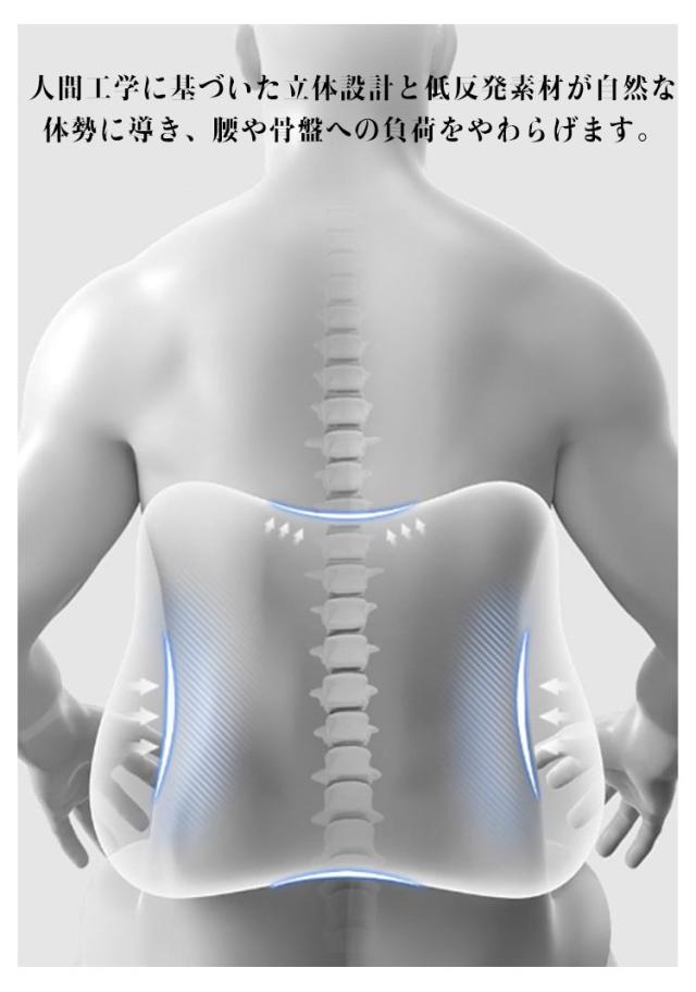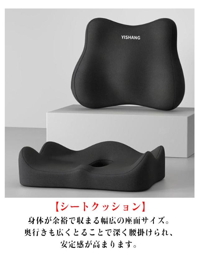 | 【シートクッション+背当てクッション 】 人間工学に基づいた設計されたクッション。 座るだけで美しい姿勢がつくれる3Dクッション。 柔らかすぎず硬すぎない適度な反発力で体圧を分散することで長時間座っていても快適です。 日々のオフィスワークや長距離運転などが多い方、テレワークの方など快適に座りたい方にオススメです。 【シートクッション】 身体が余裕で収まる幅広の座面サイズ。奥行きも広くとることで深く腰掛けられ、安定感が高まります。 前側に自然な傾斜をつけることで太ももへの体圧を軽減。背筋も自然と伸び、疲れにくい体勢を維持します。 W字型の座面と腰まで支える高めの後端が特徴的な立体フォルム。身体を包み込むようにフィットします。 【背当てクッション】 人間工学に基づいた設計された腰クッション。 人間工学に基づいた立体設計と低反発素材が自然な体勢に導き、腰や骨盤への負荷をやわらげます。 頭から腰にかけてのS字カーブをしっかり支えます。背筋が自然に伸びることで腰への負担を減らします。 両側の弧線形状の設計でお尻の圧力がよく吸収され、後端に高めたデザインであり、尾椎の圧力も深く吸収されて、体圧を分散して長時間座れも疲れないです。 | |