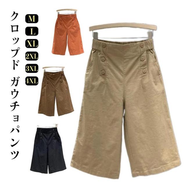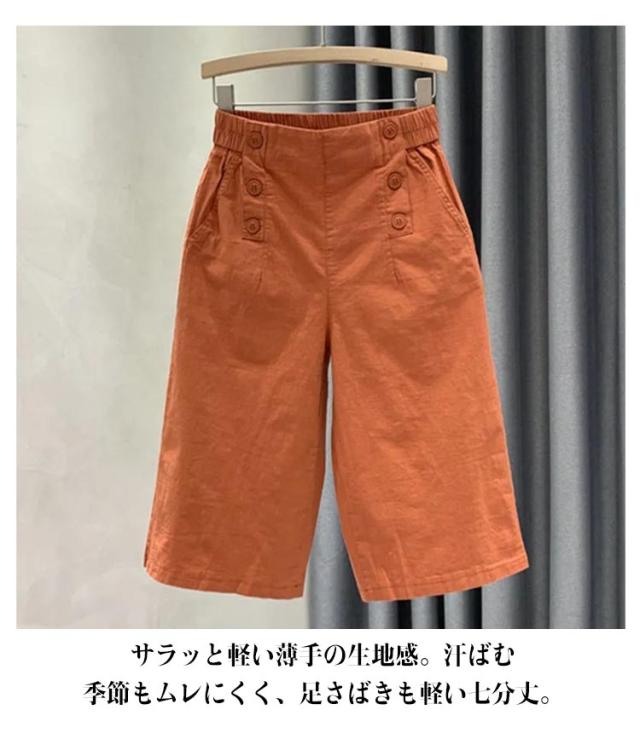 イージーパンツ 無地 クロップドパンツ 夏 パンツ クロップドパンツ 薄手 レディース ワイドパンツ コットン リラックスパンツ ボトムス ハイウエスト 着?せ 大きいサイズ おしゃれ ゆったりシンプル カジュアル