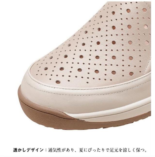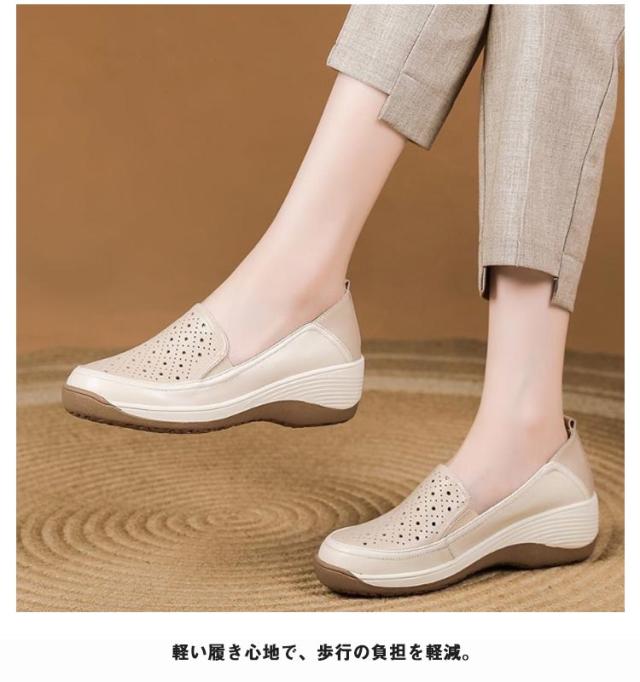 ママシューズ スリッポン 疲れにくい レディース 通気穴 透かし 柔らかい 厚底シューズ レザーシューズ 4cm 美脚 厚底 春夏 歩きやすい カジュアル 厚底スリッポン 滑り止め 22.5cm 23cm 23.5cm 透かし 24.5cm