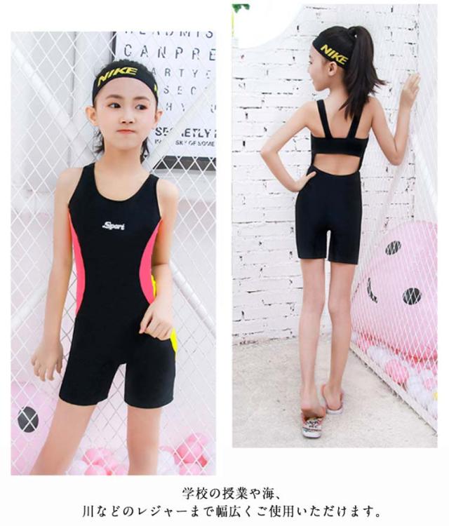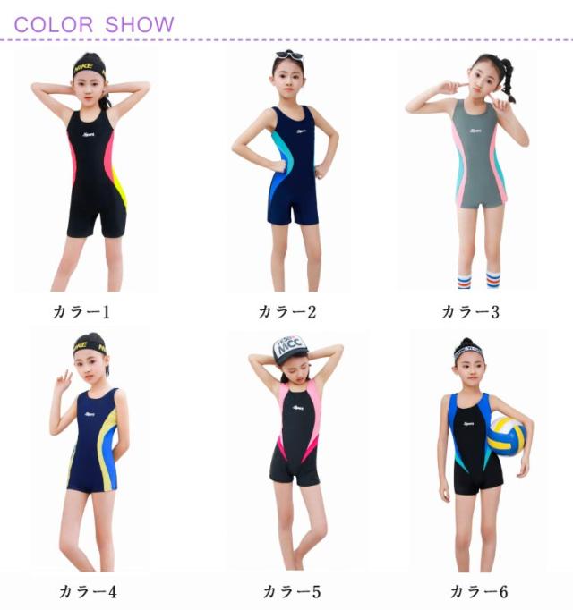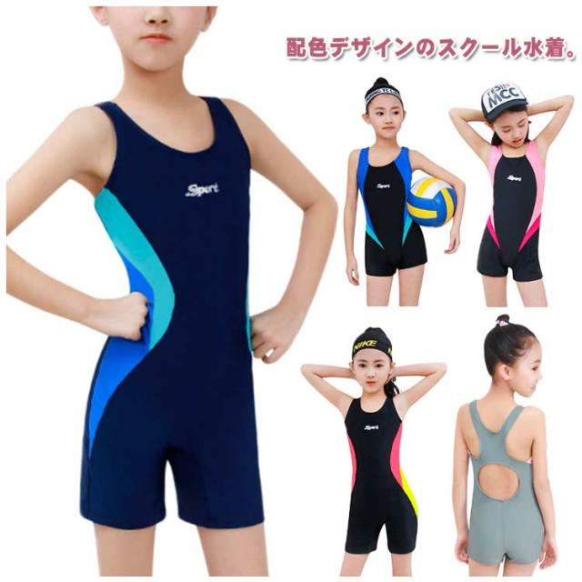 オールインワン スクール水着 配色 女の子 子供 スイムウェア ジュニア キッズ 海 練習用 スイミング用品 レッスン プール スクール水着 部活