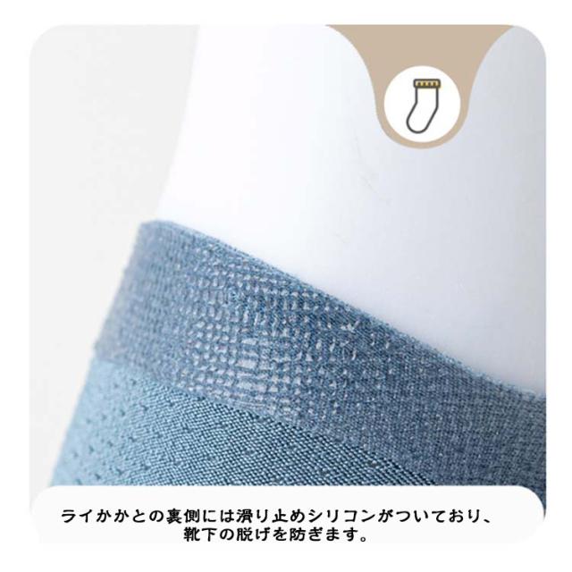 | スニーカーソックス 5足セット メッシュのしっかりしたアイスシルク生地、シルクのような、通気性、柔らかくて快適 靴下の底は純綿生地で作られており、肌に優しく通気性に優れています。 かかとの裏側には滑り止めシリコンがついており、靴下の脱げを防ぎます。 | |