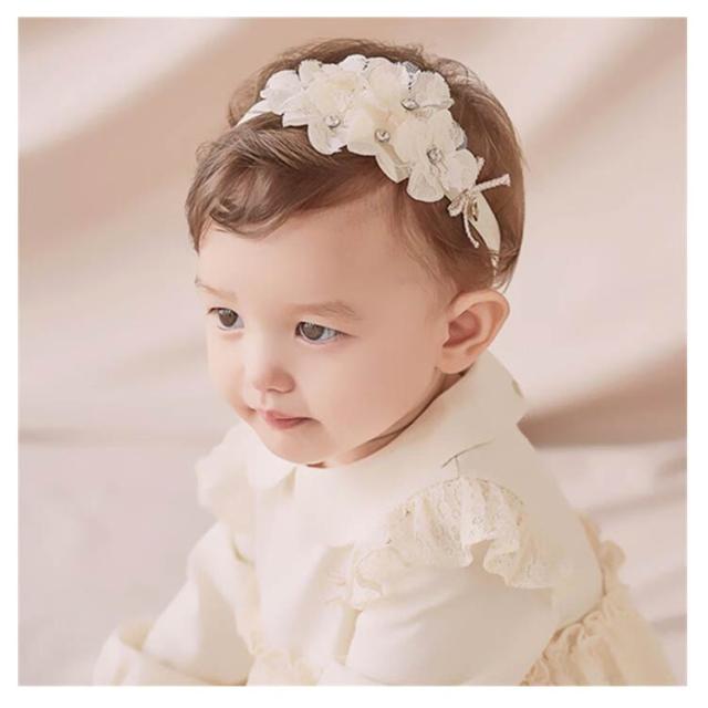 可愛い ビーヘアバンド 2本セット レース 髪飾り パール付き ベビー ヘアバンド 女の子 赤ちゃん ヘアアクセサリー 花柄 ベビーバンド ベビーヘアバンド ホワイト 白 可愛い