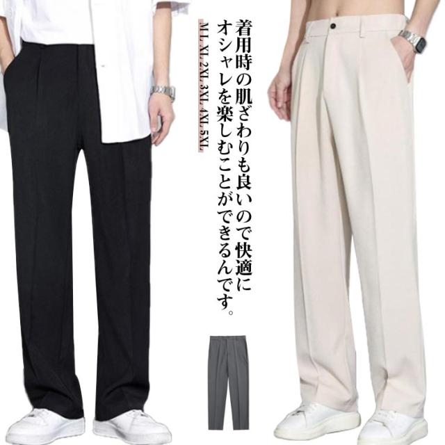 アイスシルクパンツ ズボン メンズ 冷感 ワイドパンツ 長ズボン アイスシルク アイスシルクパンツ パンツ 夏 スラックス ロングパンツ 涼感 無地 サマーパンツ 涼しい イージーパンツ ストレートパンツ 薄手 部屋着 夏服