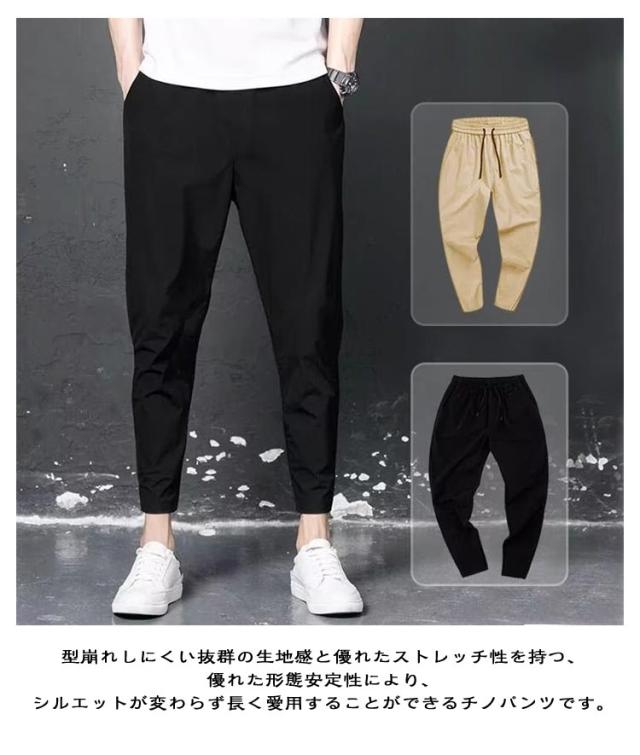チノパンツ チノパン ストレッチパンツ 伸縮 ストレッチ 薄手 夏 メンズ 細身 9分丈 チノパンツ テーパードパンツ 薄手 涼しい ゴルフパンツ ボトムス アンクルパンツ ロングパンツ イージーパンツ カジュアル スリム