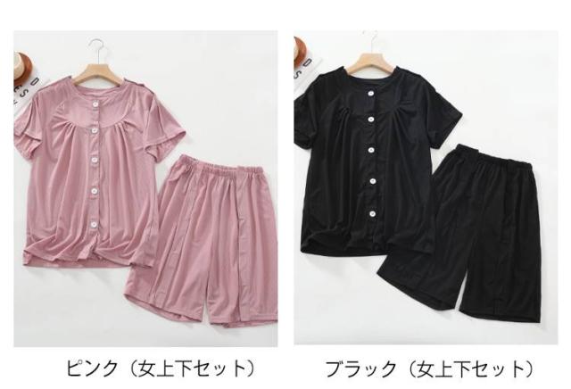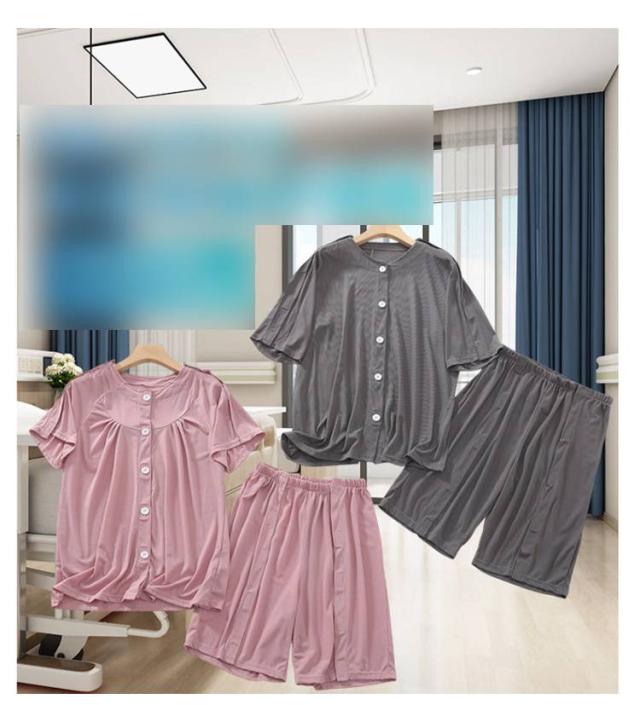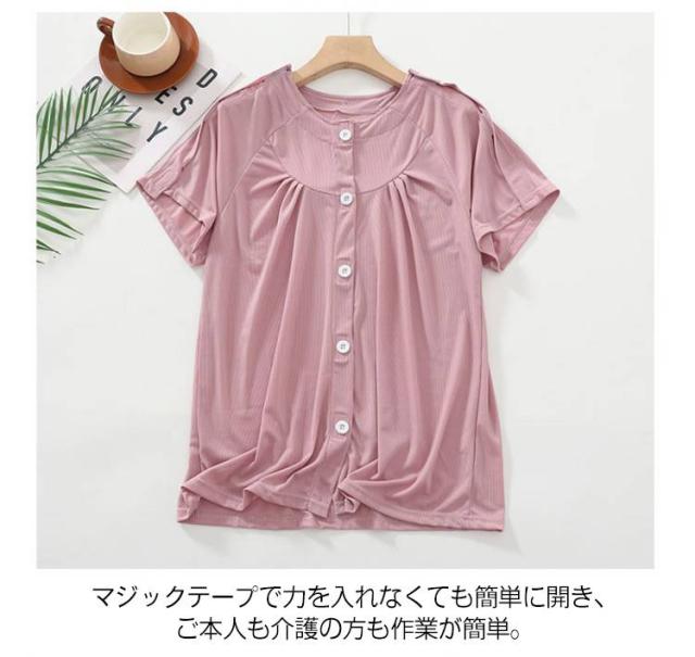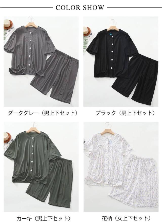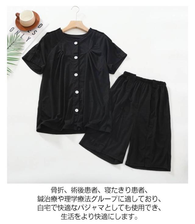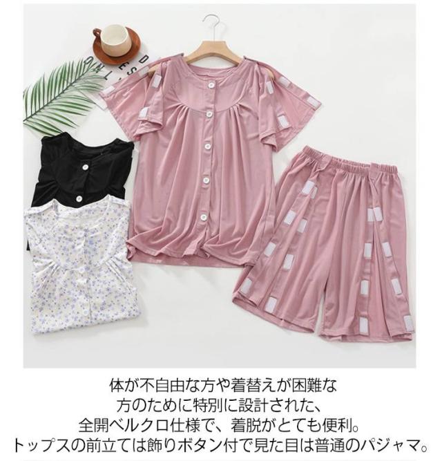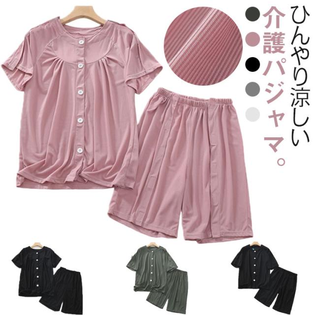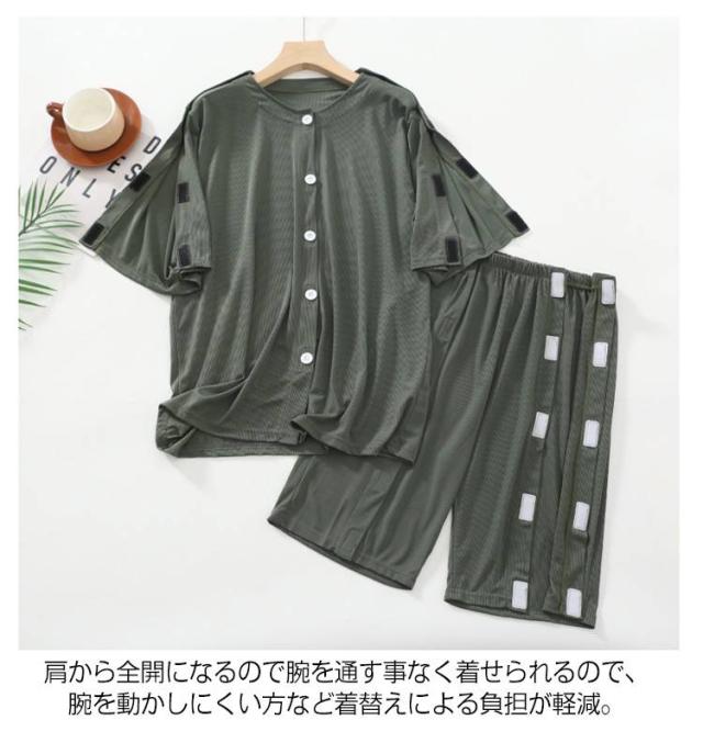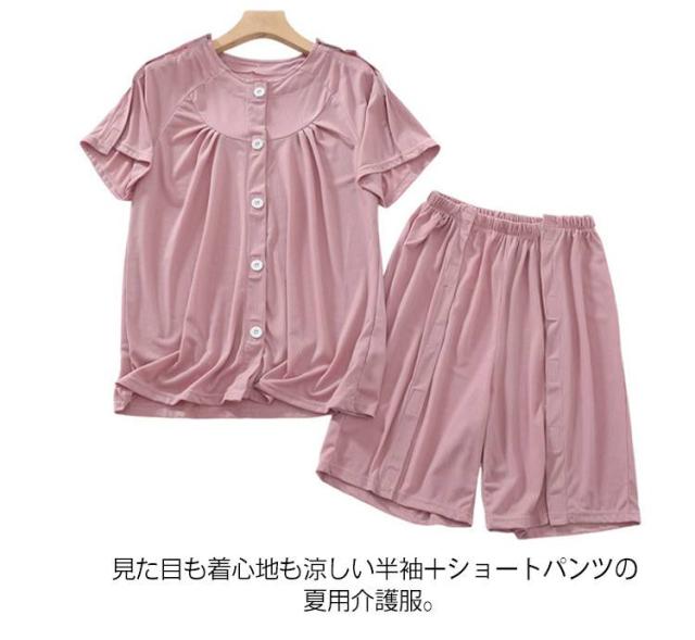 夏用 トップス ショートパンツ 婦人用 前開き 半袖 アイスシルク 介護用パジャマ パジャマセット 涼しい 点滴中サポート ワンタッチ 全開フルオープン 介護服 春夏 術後 入院 寝たきり 老人 介護用パジャマ 男性用