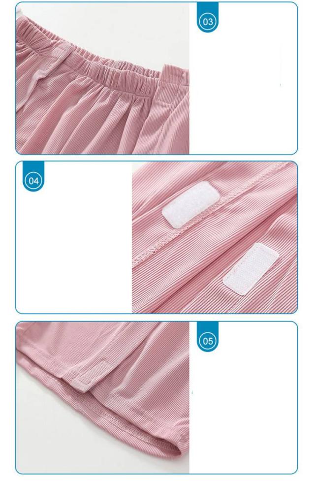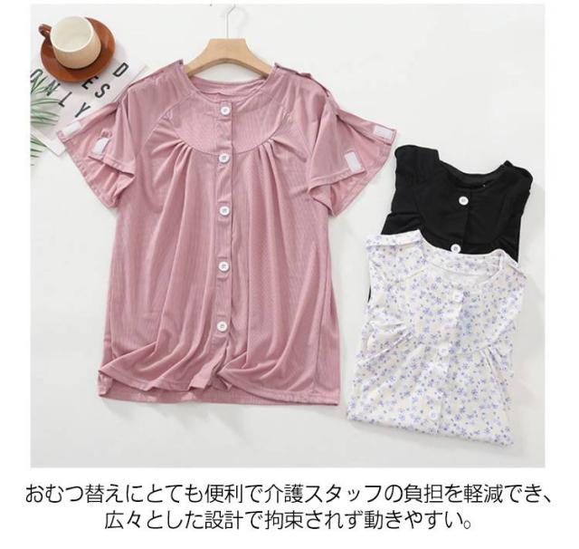 | ひんやり涼しい♪介護パジャマ。 見た目も着心地も涼しい半袖+ショートパンツの夏用介護服。 さらりと吸汗・速乾のアイスシルク生地、風通しが良く、汗ばむ季節も着心地さわやか。 体が不自由な方や着替えが困難な方のために特別に設計された、全開ベルクロ仕様で、着脱がとても便利。トップスの前立ては飾りボタン付で見た目は普通のパジャマ。 おむつ替えにとても便利で介護スタッフの負担を軽減でき、広々とした設計で拘束されず動きやすい。 マジックテープで力を入れなくても簡単に開き、ご本人も介護の方も作業が簡単。 肩から全開になるので腕を通す事なく着せられるので、腕を動かしにくい方など着替えによる負担が軽減。 骨折、術後患者、寝たきり患者、鍼治療や理学療法グループに適しており、自宅で快適なパジャマとしても使用でき、生活をより快適にします。 | |