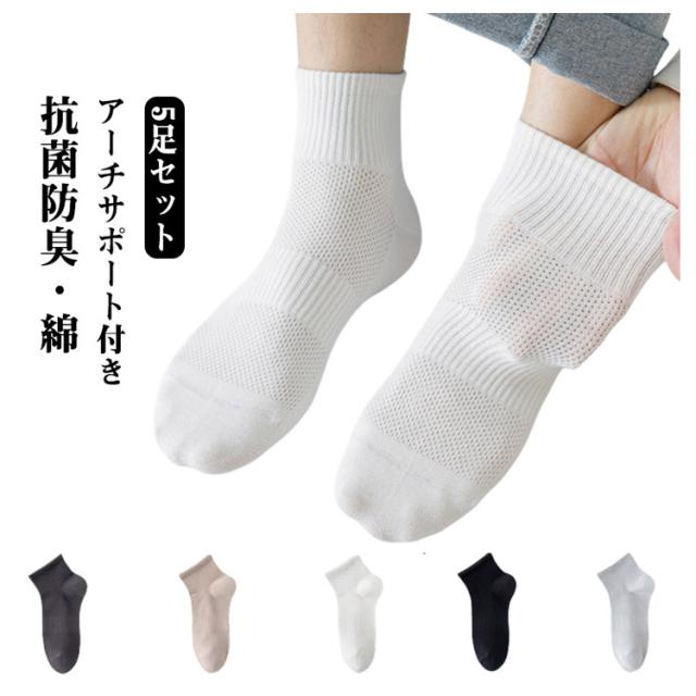 抗菌 5足セット ソックス メンズ ショート丈 メッシュ くるぶし靴下 クォーター丈 抗菌 涼しい 消臭 通気性 コットン くつ下 スクールソックス 防臭 アーチサポート 春 薄手 綿 夏 靴下 紳士