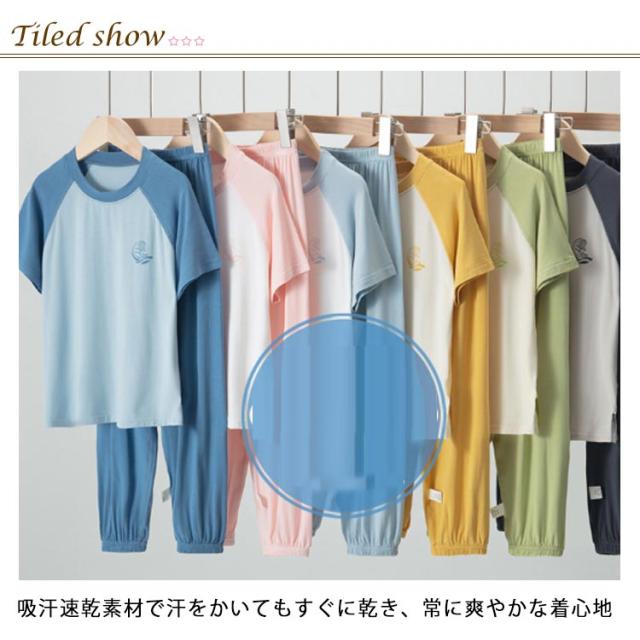 | キッズ パジャマ 夏用ルームウェア 100-170cm 吸汗速乾素材で汗をかいてもすぐに乾き、常に爽やかな着心地 サラリと薄手で軽い着心地、優れた通気性で寝苦しさも解消 パンツはウエスト総ゴムで着脱がラク | |