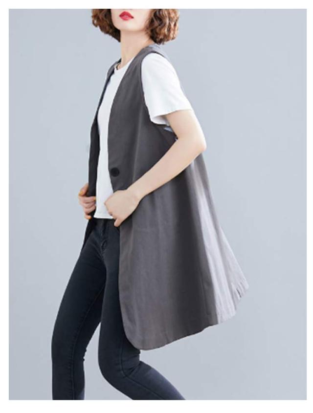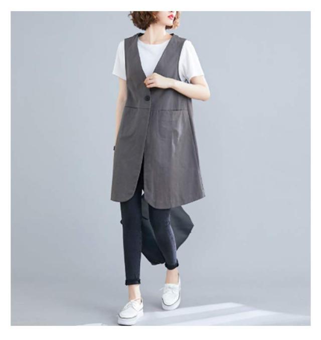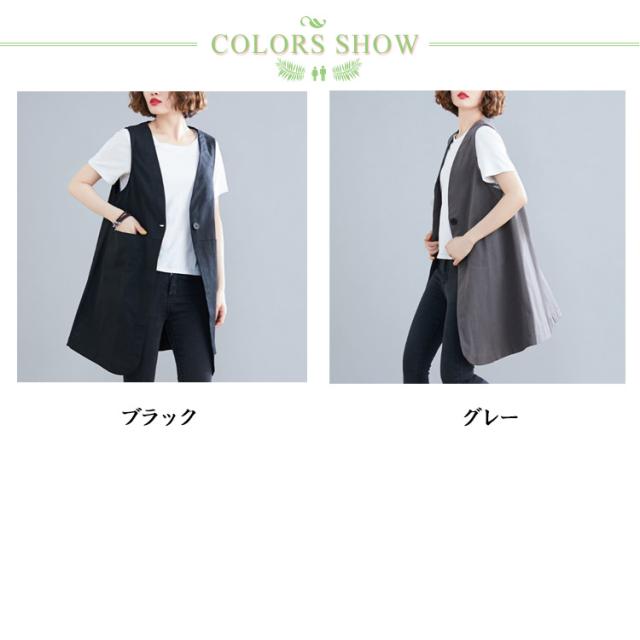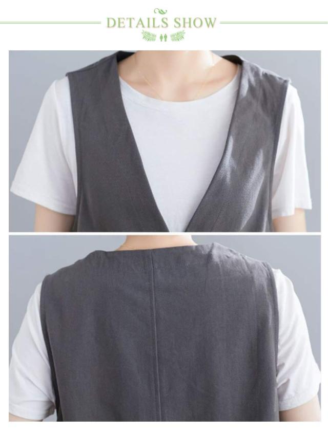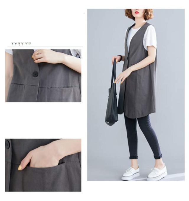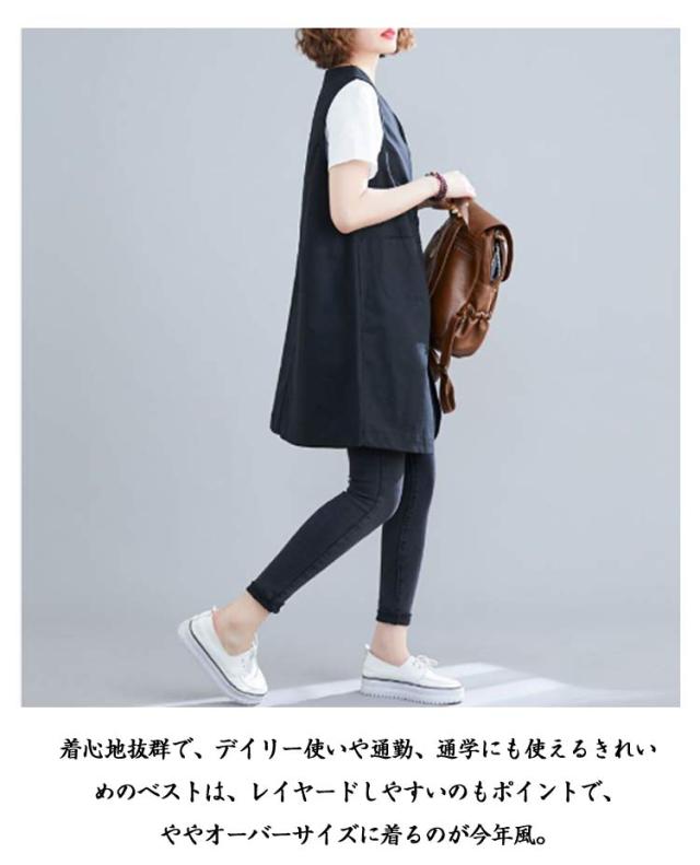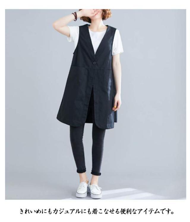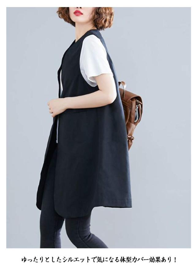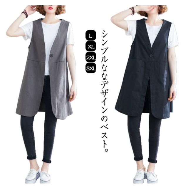 無地 ポケットある 春秋 レディース 春 ベスト ロングジレ ジレ リネン 通勤 トレンチベスト ゆったり ジレンチ トップス ロングベスト 大きいサイズ 夏 秋 ノースリーブ ジレ 大人 OL ベスト 30代 40代 50代 ボタン付き Vネック