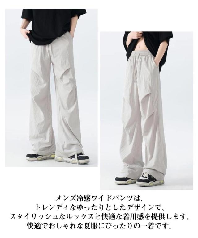 | メンズ冷感ワイドパンツは、トレンディなゆったりとしたデザインで、スタイリッシュなルックスと快適な着用感を提供します。快適でおしゃれな夏服にぴったりの一着です。 腰から下半身までゆたっりとしたデザインを採用しておりため、窮屈感がありません。伸縮性のあるウエストを採用しています、腰回りや好みに合わせて自由に調整することができます。 多彩なスタイリングを楽しむことができるワイドパンツです。様々なトップスとの組み合わせが可能で、シンプルなカジュアルから上品なスタイルまで幅広く対応します。 | |