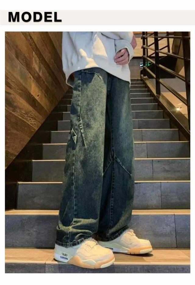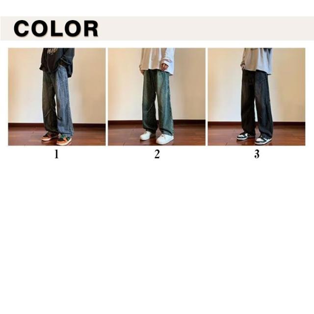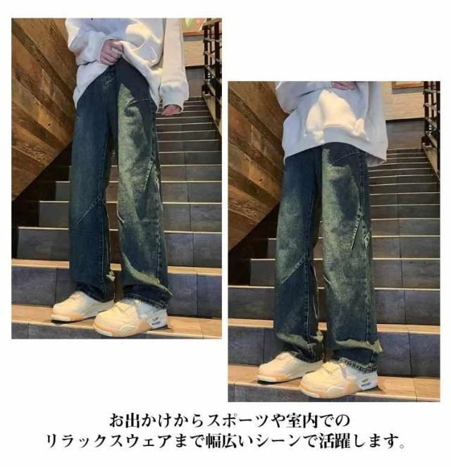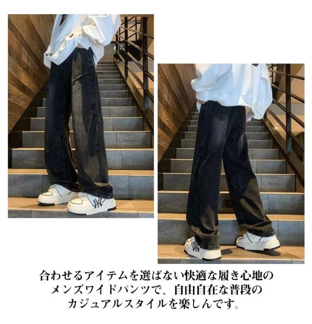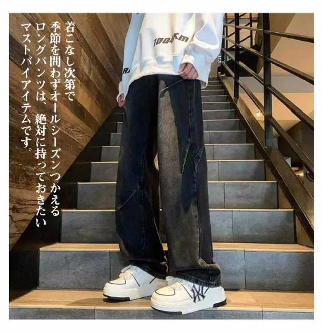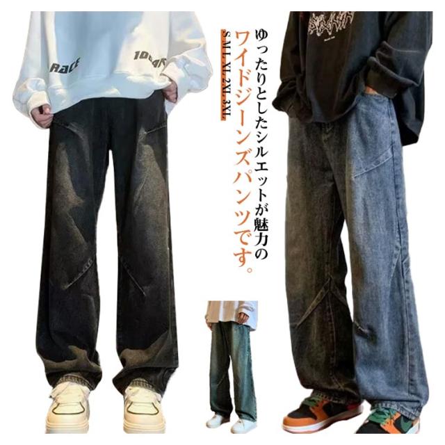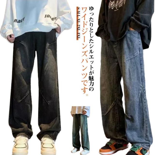 ワイドパンツ メンズ ロングパンツ 夏 春 ワイドパンツ ストリート デニム 男性 無地 シンプル 長ズボン Gパンツ イージーパンツ カッコイイ ボトムス オールシーズン 大きいサイズ 体型カバー メンズファッション 通勤 通学 おしゃれ カジュアル