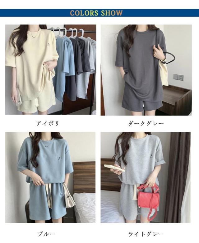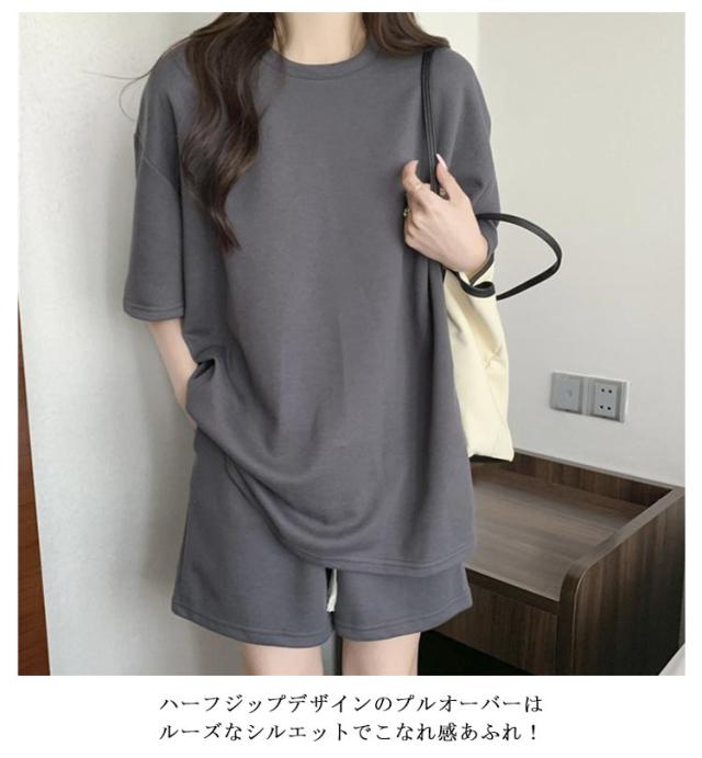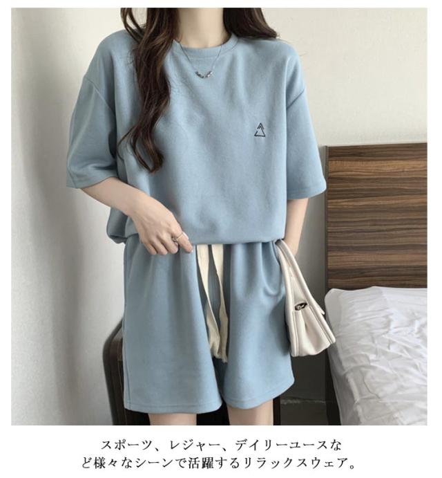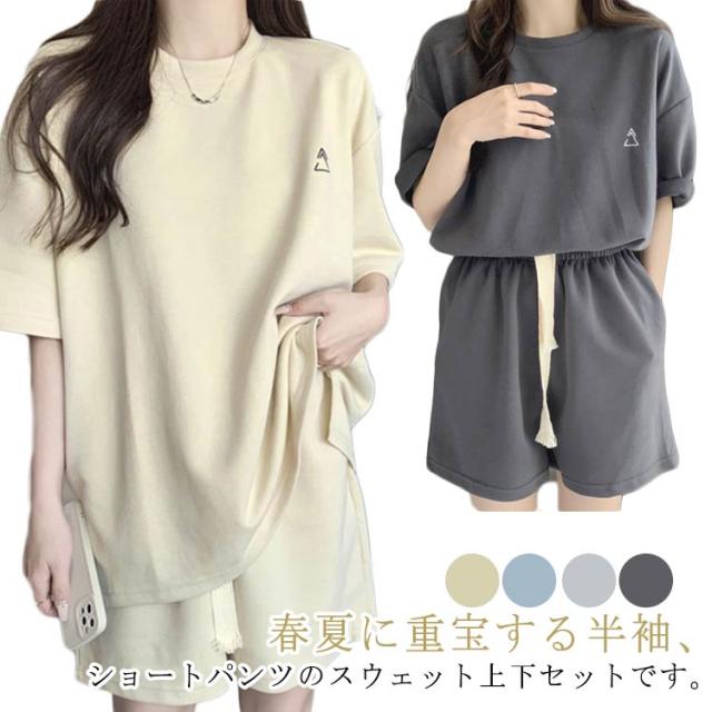 Tシャツ ジャージ ハーフパンツ レディース セットアップ 袖 夏 ジャージ 2点セット 春 半袖カットソー 楽ちん 可愛い ゆったり カジュアル 短パン ルームウェア 上下セット 部屋着