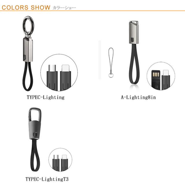 充電 充電ケーブル キーホルダー型 ストラップ式 データ転送 キーリング ケーブル Type-c/Lighting iPhoneケーブル Type-Cケーブル MicroUSBケーブル iPhone用