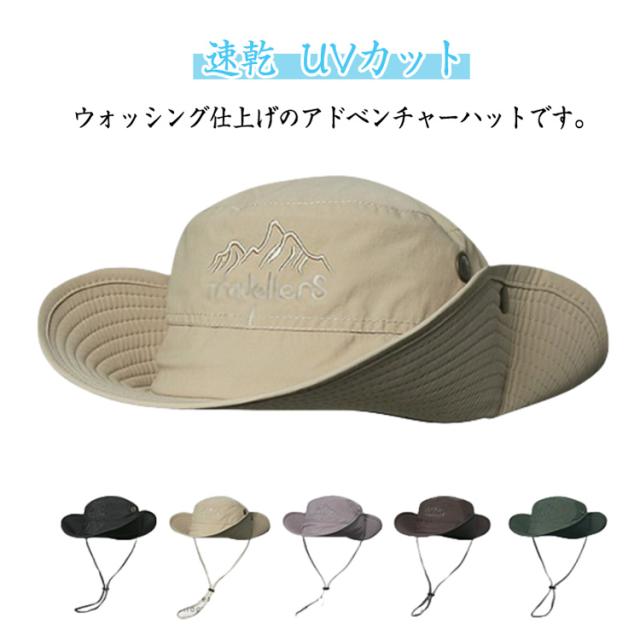 サファリハット ツバ広 つば広 帽子 ハット ジャングルハット アドベンチャーハット レディース あご紐 メンズ UVカット サイズ調節可能 帽子 メッシュ 無地 帽子 速乾 折りたたみ uv ハット トレッキング アウトドア