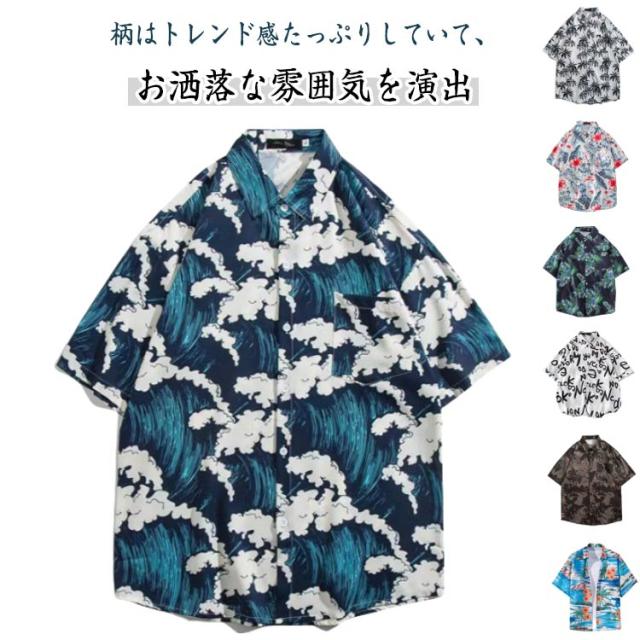 アロハシャツ メンズ おしゃれ アロハ 花柄シャツ 半袖シャツ アロハシャツ 総柄 シャツ 薄手 アロハシャツ カジュアルシャツ 五分袖シャツ 半袖 和柄 男性シャツ ゆったり 夏 ビーチシャツ オープンカラーシャツ ハワイ旅行