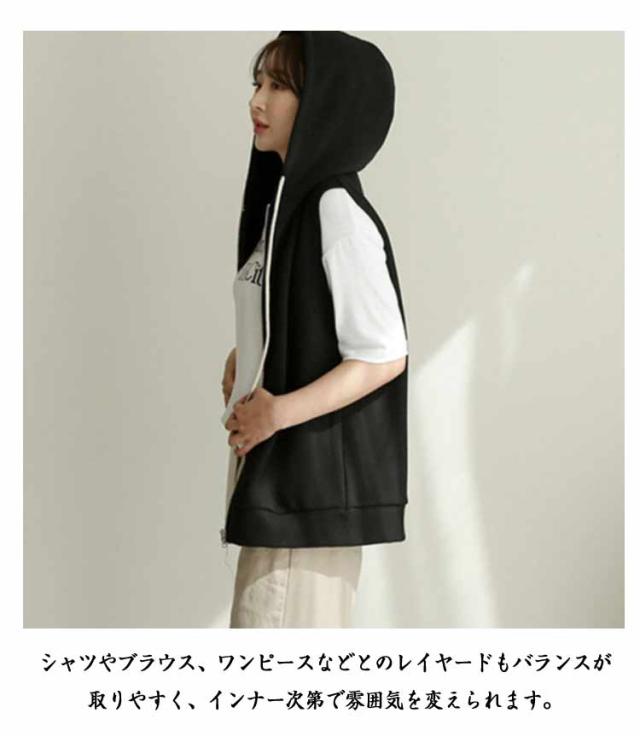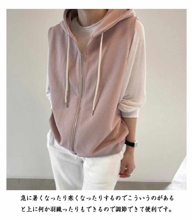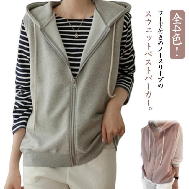 ノースリーブ パーカーベスト パーカー スポーティー ノースリーブ ベスト スウェットベスト ジレ レディース アウター トレンチベスト ライトアウター トップス スウェット トレーナー フード ベスト 羽織 厚手 ゆったり 大きいサイズ 春 夏 秋