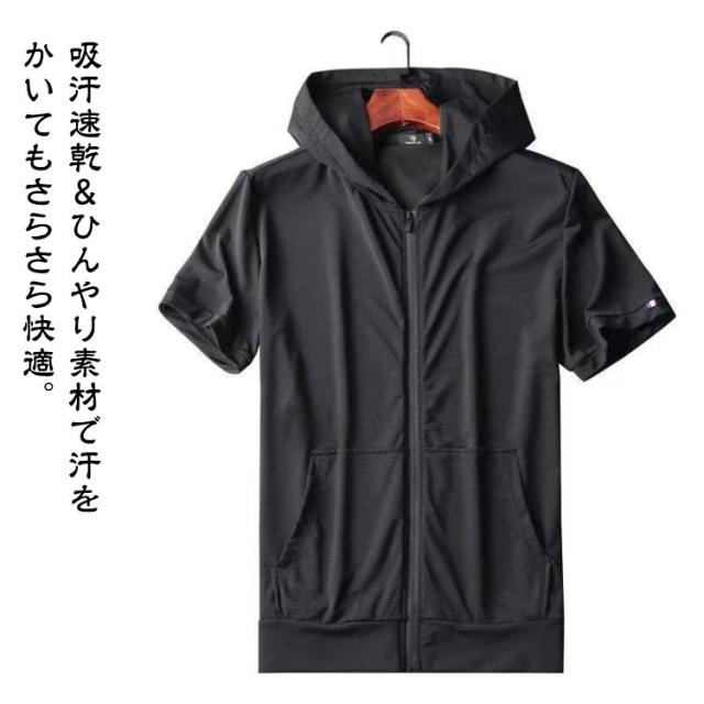 パーカー ジップアップパーカー 半袖 フード付き 涼感 スポーツ フード付き 半袖 夏服 アウター ドライ 通気性 夏 アウトドア 羽織り トップス シンプル おしゃれ 薄手 ジップパーカー 春 夏 吸汗速乾 メッシュ 半袖パーカー ひんやり 冷感