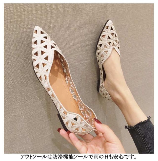 カットワーク カットワーク パンプス フラットシューズ フラットパンプス ぺたんこパンプス 疲れ内 走れる 歩きやすい 柔らか 痛くない 履きやすい 軽量 フラットスリッポン ポインテッドトゥ 疲れにくい ローヒール 華奢見え サンダル 脱げない