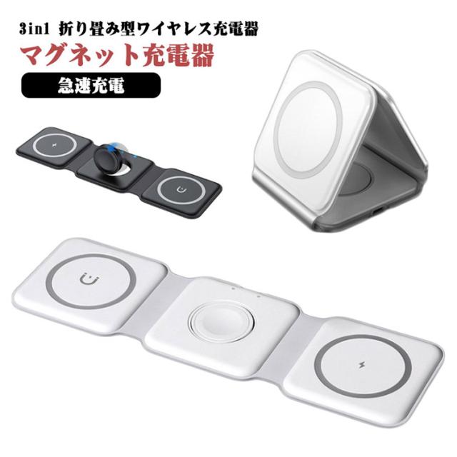 ワイヤレス充電器 充電 折りたたみ マグネット 急速充電 3台同時 最大15w 小型 軽量 ワイヤレス充電器 ワイヤレス充電スタンド iphone用 スマホ 腕時計