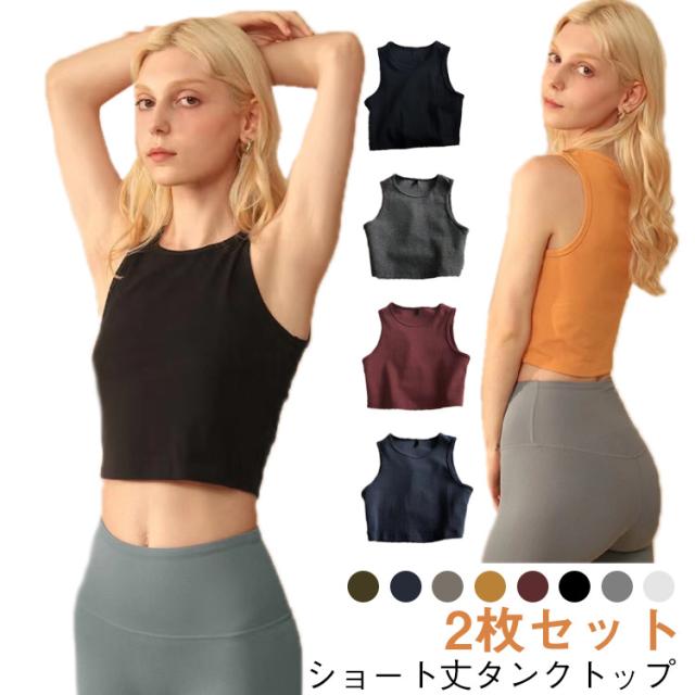 【2枚セット】タンクトップ ショート丈タンクトップ レディース 着回し 【2枚セット】タンクトップ トップス カットソー 普段着 デイリー ヨガ ダンス フィットネス シンプル 無地 夏服 全8色